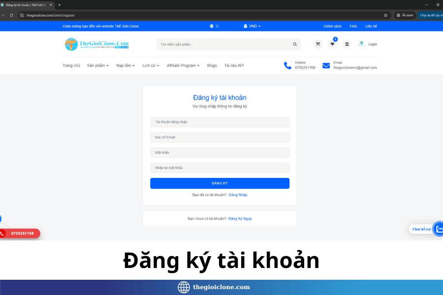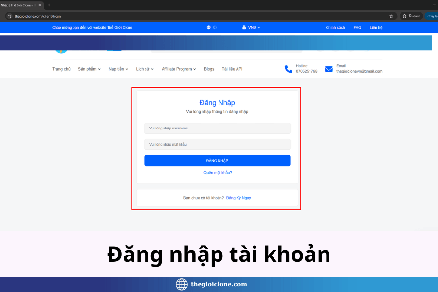 Đăng nhập tài khoản tại link: https://thegioiclone.com/client/login