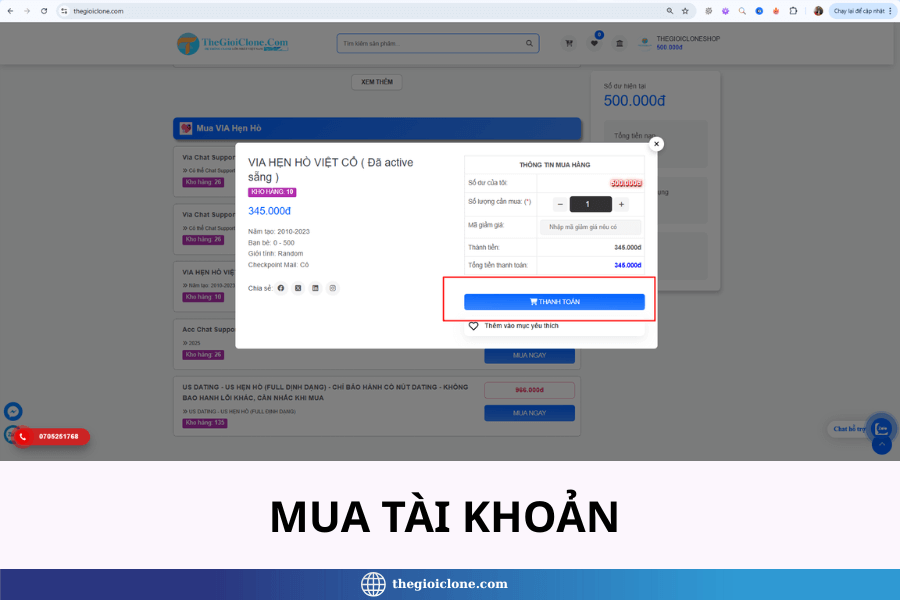 BƯỚC 4: MUA TÀI KHOẢN