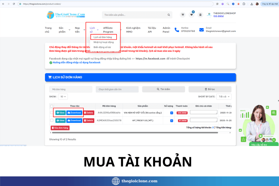 Hiện nay, có rất nhiều anh em cần mua VIA để chạy quảng cáo, seeding, hay nhu cầu khác. Tuy nhiên lại không biết cách để mua sao cho nhanh và tiện lợi nhất. Hôm nay Thế giới Clone xin phép được chia sẻ cách để có thể giao dịch hoàn toàn tự động trong 1 phút. Vô cùng tiện lợi và an toàn tại web bán tài nguyên: Thegioiclone.com