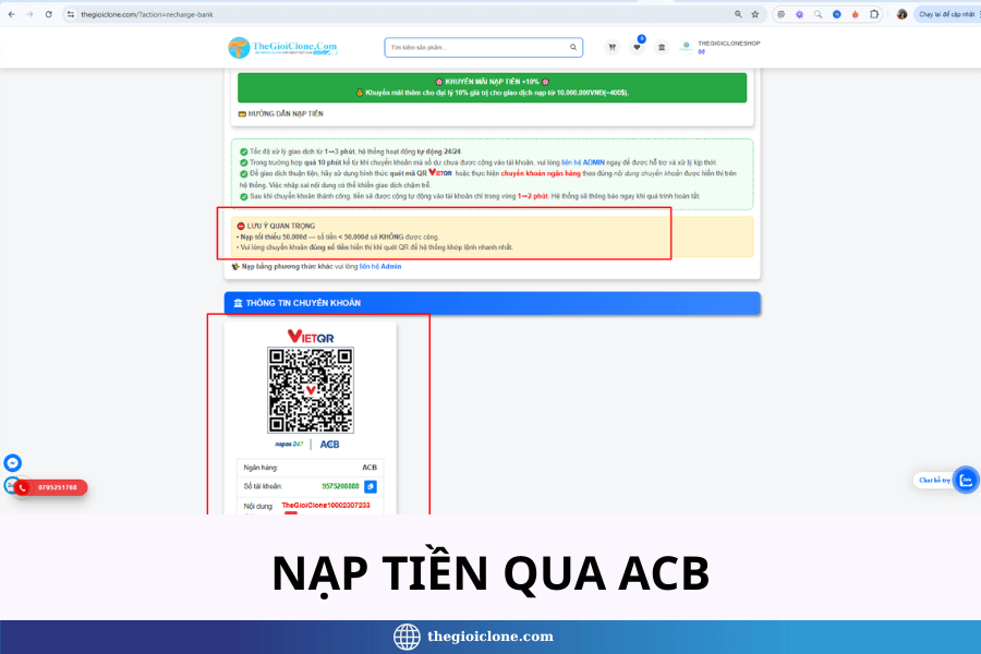 Ưu điểm nạp tiền trên Thegioiclone.com hoàn toàn tự động và cực kỳ nhanh chóng, chỉ < 10 giây sau khi bạn tiến hành chuyển tiền.