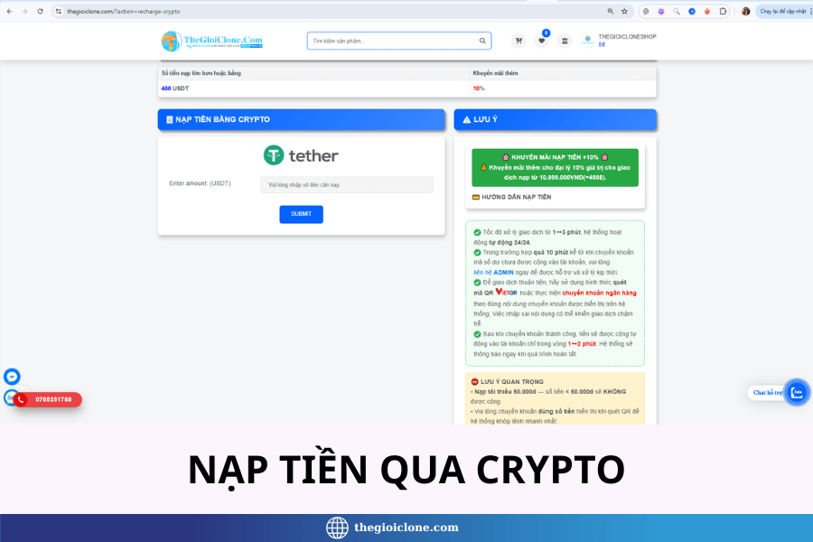 Ngoài ra chúng tôi chấp nhận nạp tiền bằng USDT,…