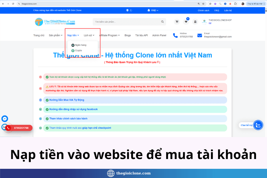 BƯỚC 3: Nạp tiền vào website để mua tài khoản